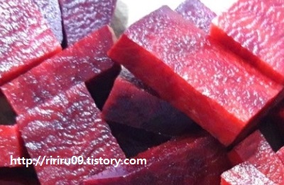 비트는 abc 주스로 인해 알게 된 뿌리채소인데요. 강력한 항산화 작용을 하는 베타인이 들어 있어서 나쁜 콜레스테롤이 산화되고 혈관을 좁게 만드는 것을 예방할 수 있습니다. 항암 작용은 물론 해독 효과도 있습니다.